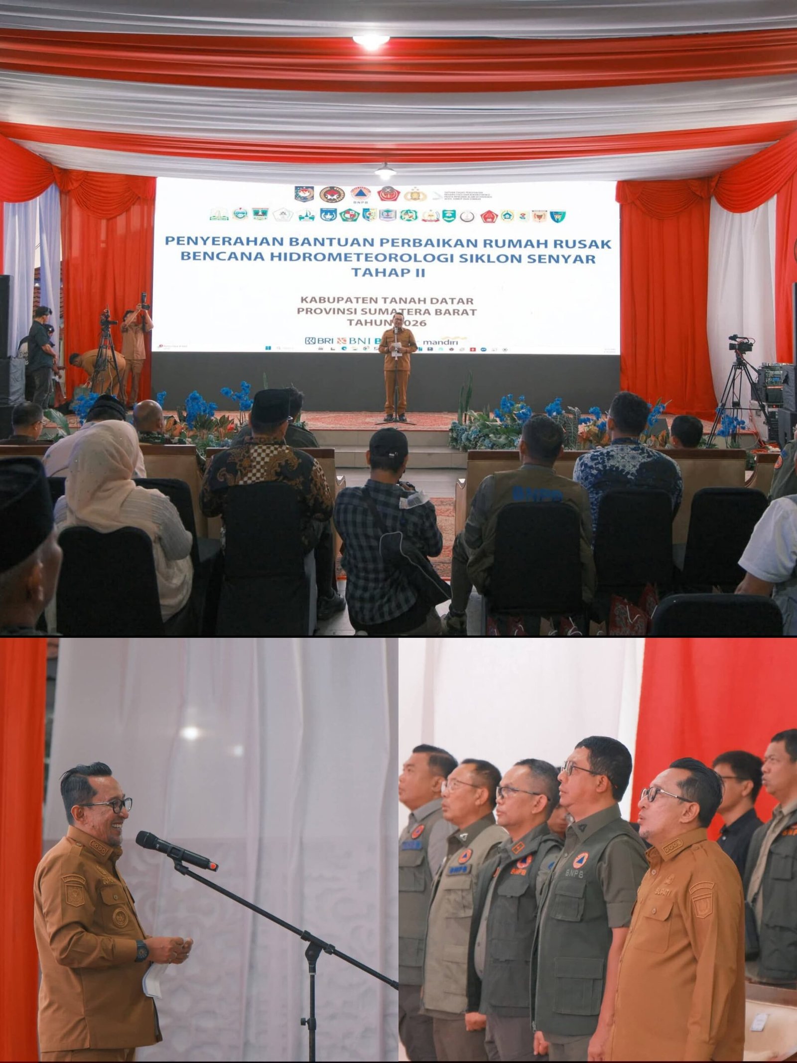 Penyaluran bantuan tahap II ini dilakukan secara virtual serentak di 15 kabupaten/kota di wilayah Aceh, Sumatera Utara, dan Sumatera Barat, yang dipimpin langsung oleh Menko PMK RI, Pratikno. Di Tanah Datar sendiri, bantuan dialokasikan bagi 61 KK dengan kategori rusak ringan dan 65 KK dengan kategori rusak sedang.