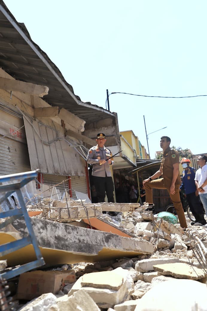 ” Kami menyampaikan turut berduka cita. Karena ada satu pria meninggal dunia dan tiga warga pengunjung pasar lainnya luka-luka akibat tertimpa material bangunan yang runtuh,” kata Wabup Ali Syakieb di TKP.