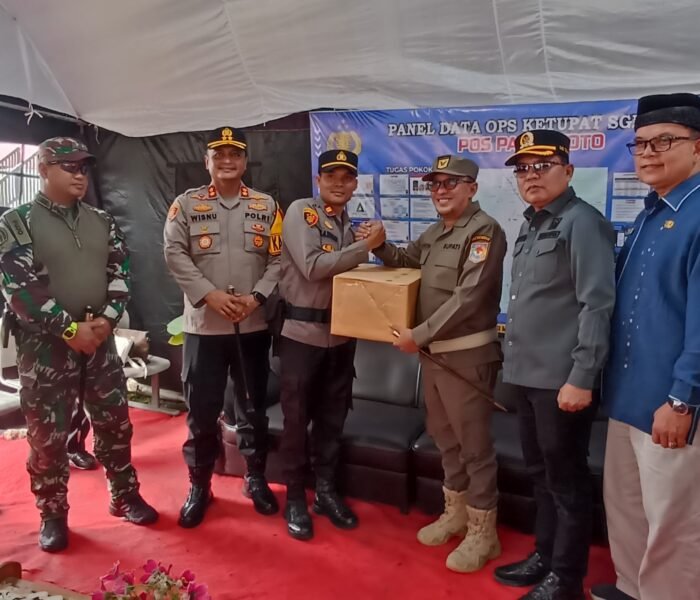 Sebagai bentuk apresiasi dan dukungan moril, Bupati bersama rombongan Forkopimda juga menyerahkan bantuan logistik berupa makanan dan minuman ringan kepada para petugas yang berjaga di garda terdepan pengamanan Lebaran tahun ini.