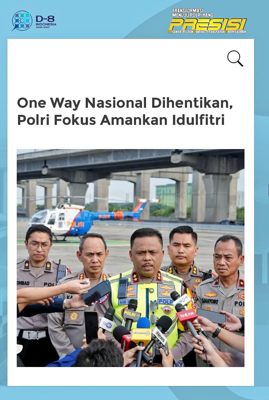 MEDIAINVESTIGASIMABES.CO.ID | JAKARTA – Korps Lalu Lintas (Korlantas) Polri resmi mengakhiri penerapan sistem rekayasa lalu lintas one way nasional pada arus mudik Lebaran 2026. Keputusan ini diambil setelah volume kendaraan di sepanjang jalur mudik dinilai telah melandai dan situasi di lapangan sepenuhnya terkendali.