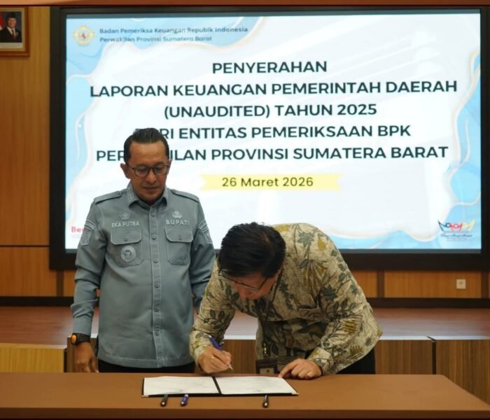 MEDIAINVESTIGASIMABES.CO.ID | PADANG (SUMATERA BARAT) – Pemerintah Kabupaten Tanah Datar menunjukkan komitmen tinggi dalam transparansi keuangan dengan menjadi daerah pertama yang menyerahkan Laporan Keuangan Pemerintah Daerah (LKPD) Unaudited Tahun Anggaran 2025 kepada BPK RI Perwakilan Provinsi Sumatera Barat.
