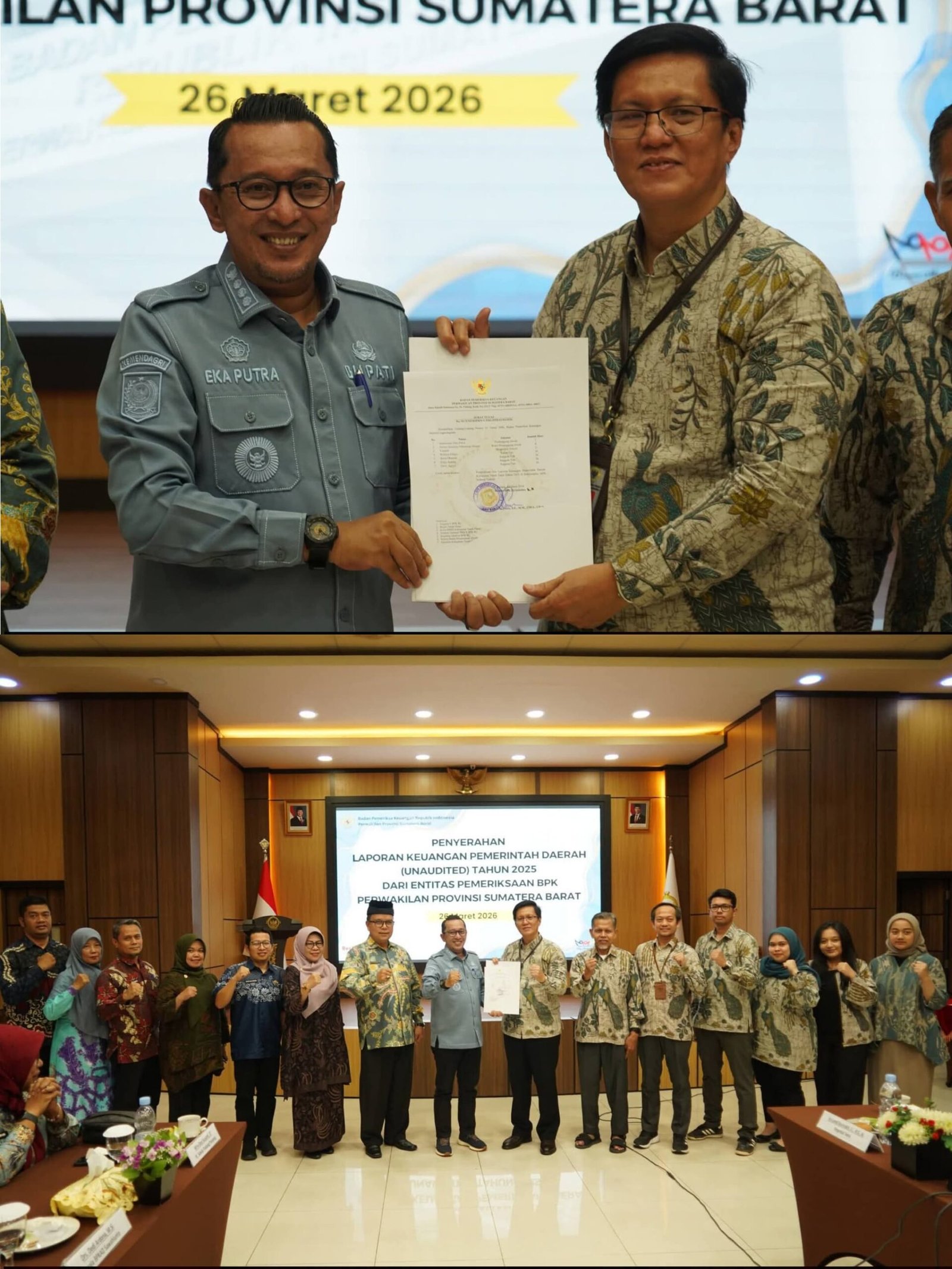 Laporan tersebut diserahkan langsung oleh Bupati Tanah Datar, Eka Putra, kepada Kepala Bidang Pemeriksaan Sumbar II, Nelson Siregar, di Aula Kantor BPK RI, Padang, Kamis (26/3/2026).