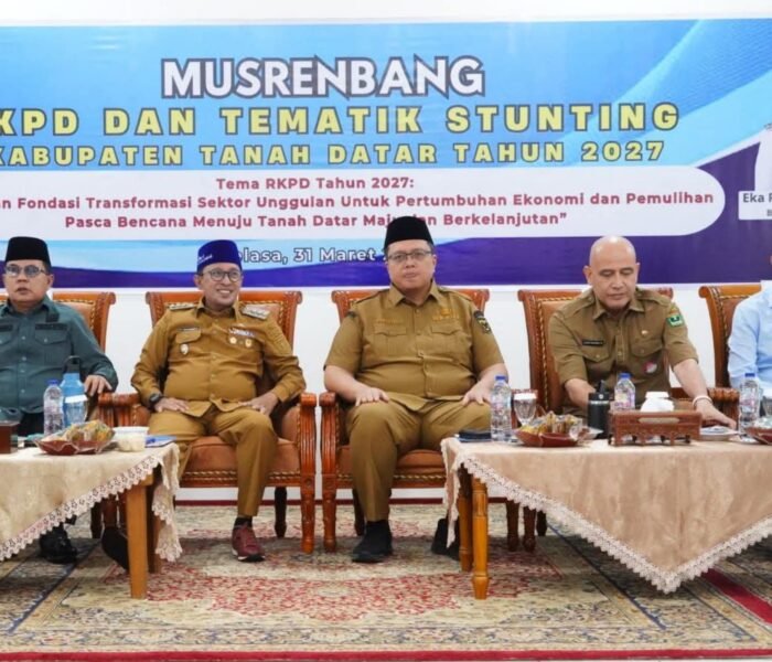 MEDIAINVESTIGASIMABES.CO.ID | BATUSANGKAR (SUMATERA BARAT) – Bupati Tanah Datar, Eka Putra, S.E., M.M., melayangkan instruksi tegas kepada Pemerintah Provinsi Sumatera Barat terkait kondisi infrastruktur jalan yang kian memprihatinkan. Hal ini disampaikan Bupati saat membuka Musyawarah Perencanaan Pembangunan (Musrenbang) RKPD 2027 dan Tematik Stunting di Aula Kantor Bupati, Senin (31/3/2026).