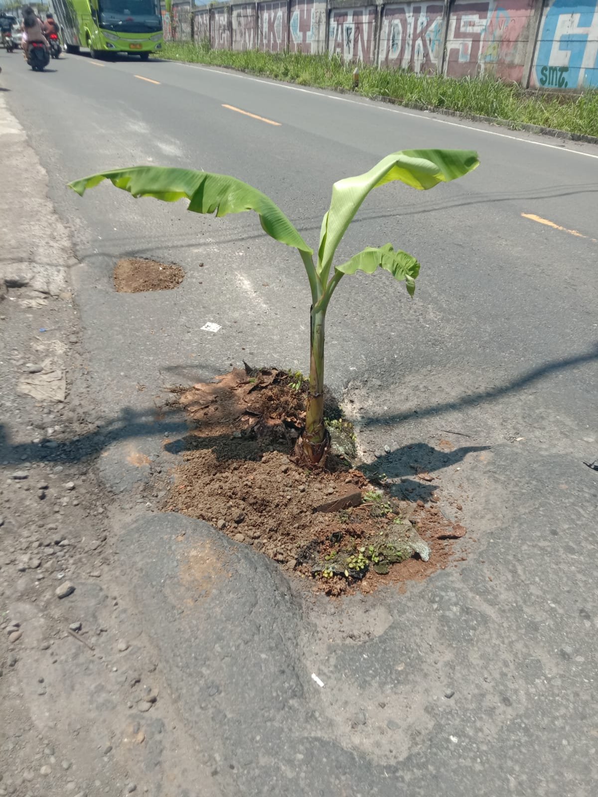 Salah satunya berada di wilayah Desa Benda, Kecamatan Cicurug yang ditanami pohon pisang oleh warga yang geram karena tak kunjung dilakukan pemeliharaan, warga menghawatirkan rawan kecelakaan dengan kondisi jalan berlubang yang cukup dalam dan lebar apalagi dimalam hari penerangan jalan pun sangat minim.