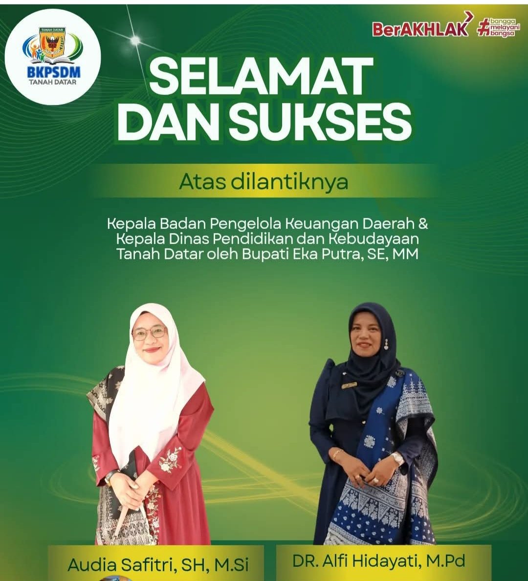 Audia Safitri, S.H., M.Si. sebagai Kepala Badan Pengelola Keuangan Daerah (BPKD) Tanah Datar.