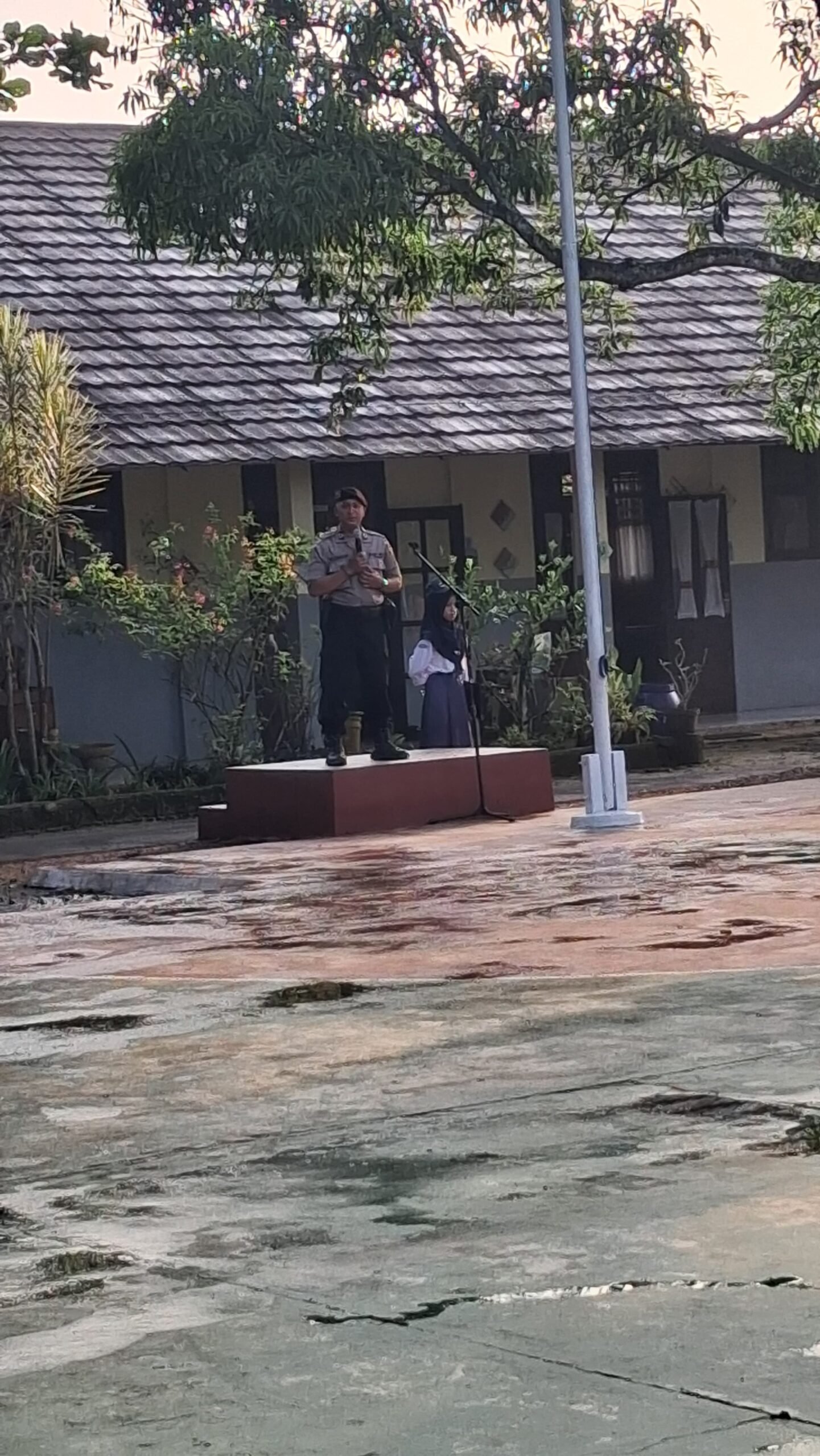 Para personel Polsek Plered disebar ke seluruh sekolah untuk bertugas sebagai pembina upacara menyampaikan himbauan-himbuan Kamtibmas kepada para pelajar di wilayah tersebut.