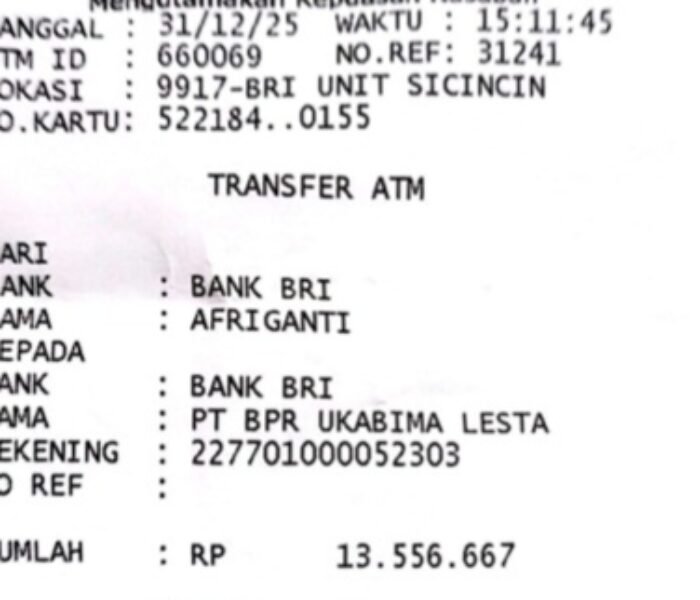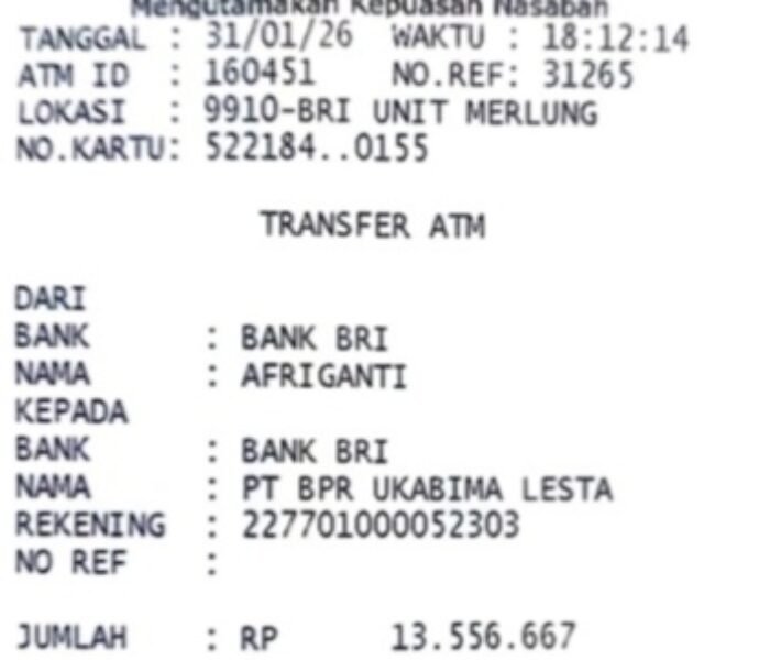 Dengan demikian, status “kredit macet” yang dijadikan dasar lelang menjadi tidak sebanding dengan fakta pembayaran di lapangan.padahal Nasabah Afriganti ingin membayar satu bulan Angsuran namun dengan Arogan Kepala Cabang Bank BPR Ukabima Lestari Menolak pembayaran untuk bulan Februari 2026, dengan alasan harus melunasi kewajiban agar lancar.