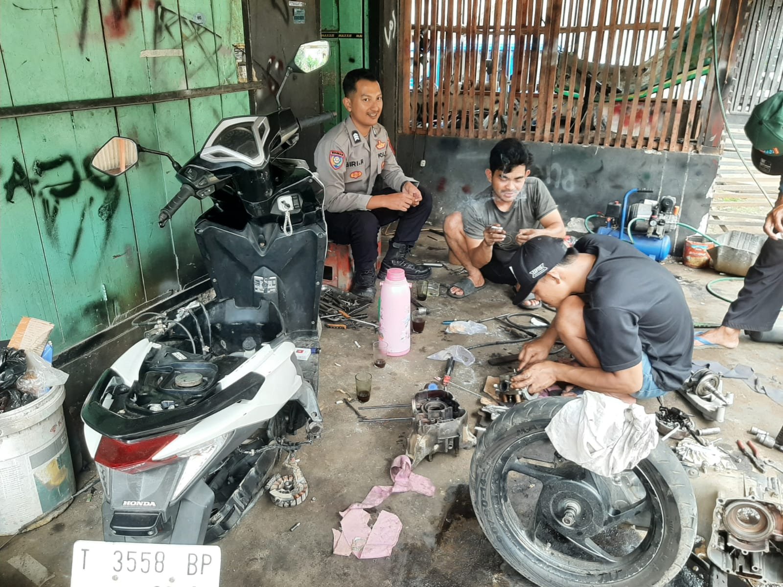 Salah satunya dilakukan oleh Bhabinkamtibmas Desa Pondok Bungur, Brigpol Giri Rukmantara, yang menyambangi bengkel motor di wilayah binaannya pada Senin (20/04/2026).