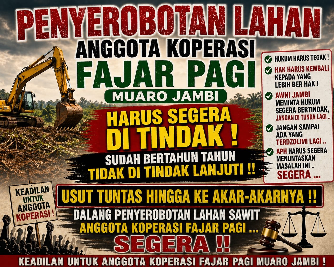Perkara ini berakar dari dugaan perampasan kebun oleh kelompok yang dikenal sebagai “Tim 12” sejak September 2024, yang menyebabkan sejumlah anggota koperasi fajar pagi kehilangan akses terhadap lahan dan hasil panen.