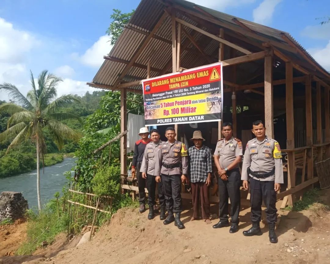 MEDIAINVESTIGASIMABES.CO.ID | TANAH DATAR (SUMBAR) – Genderang perang terhadap Penambangan Emas Tanpa Izin (PETI) resmi ditabuh di wilayah hukum Polsek Rambatan. Sebagai langkah nyata menyelamatkan lingkungan dan menegakkan hukum, jajaran Polsek Rambatan melakukan aksi jemput bola dengan memasang spanduk peringatan keras di sejumlah titik panas tambang ilegal pada Selasa (28/04/2026).