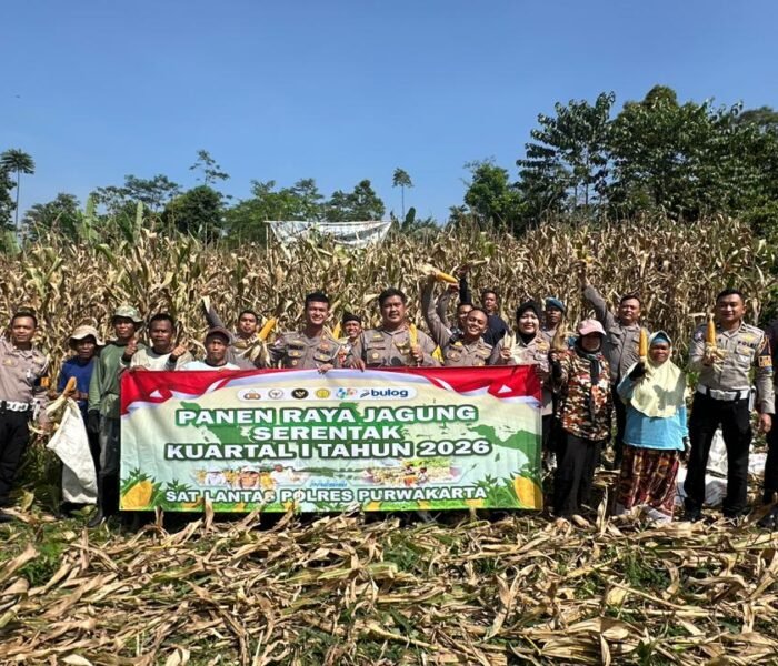 MEDIAINVESTIGASIMABES.CO.ID | PURWAKARTA (JABAR) ~ Komitmen Polres Purwakarta dalam mendukung program swasembada pangan tahun 2026 kembali diwujudkan melalui kegiatan panen jagung hibrida Kuartal I yang dilaksanakan oleh Satuan Lalu Lintas (Sat Lantas) bersama kelompok tani di Kabupaten Purwakarta.